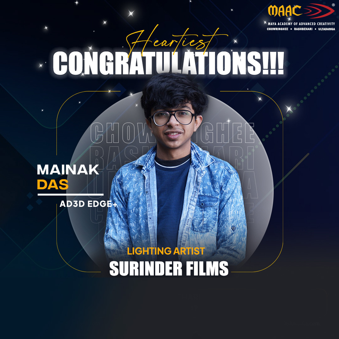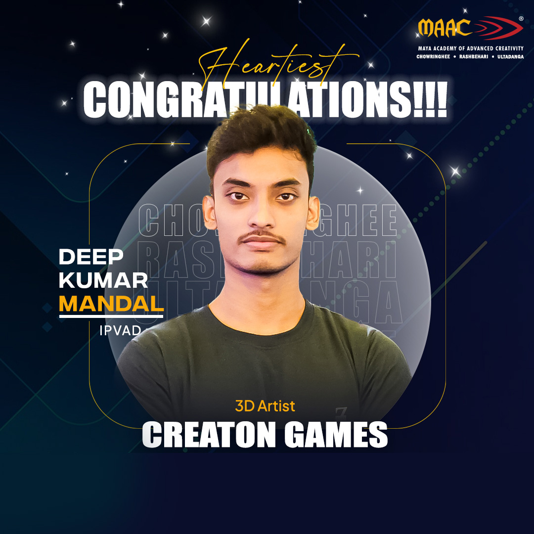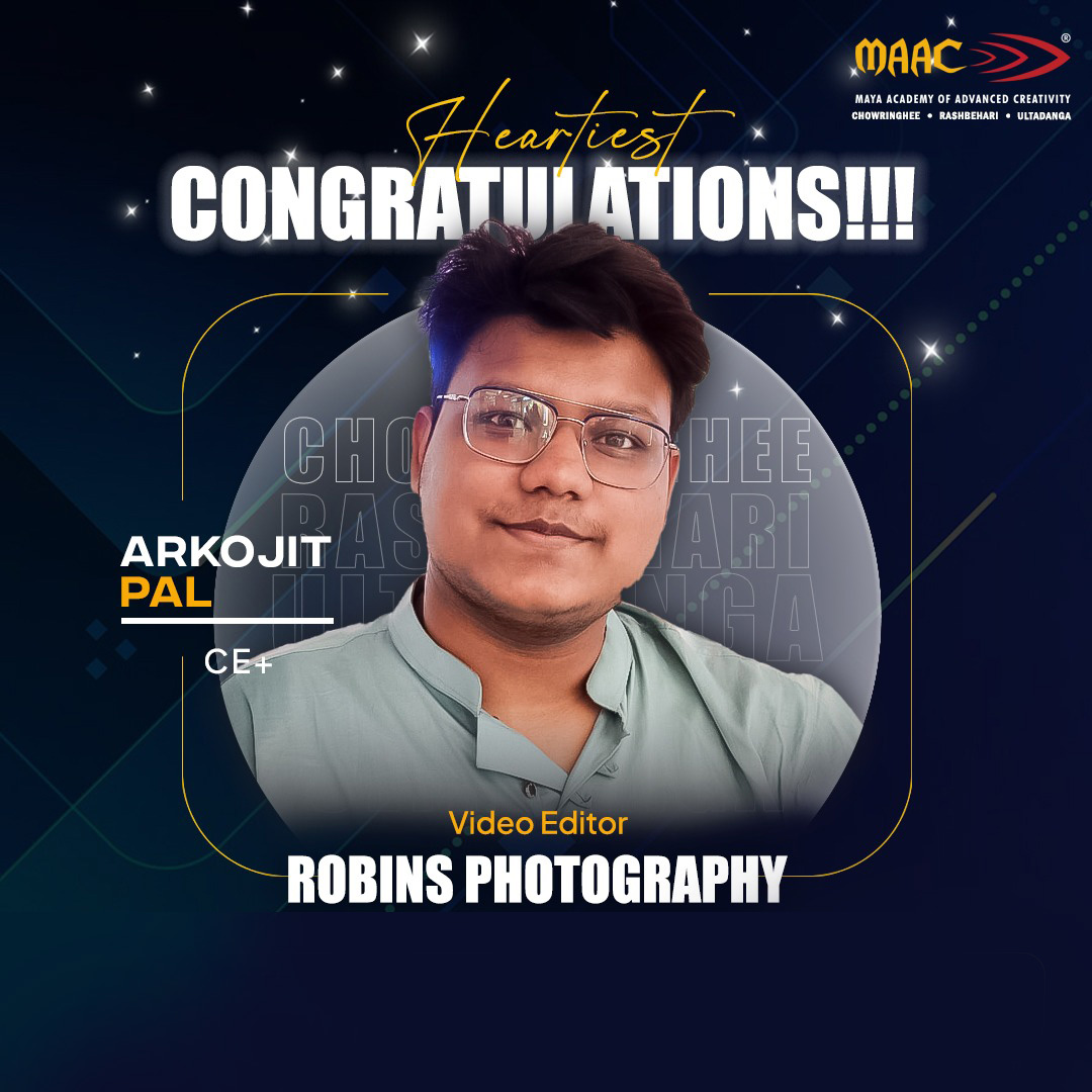 MAAC Kolkata gives complete support to students with career opportunities in renowned companies & studios. Each student gets 3+ job interview opportunities on course completion.